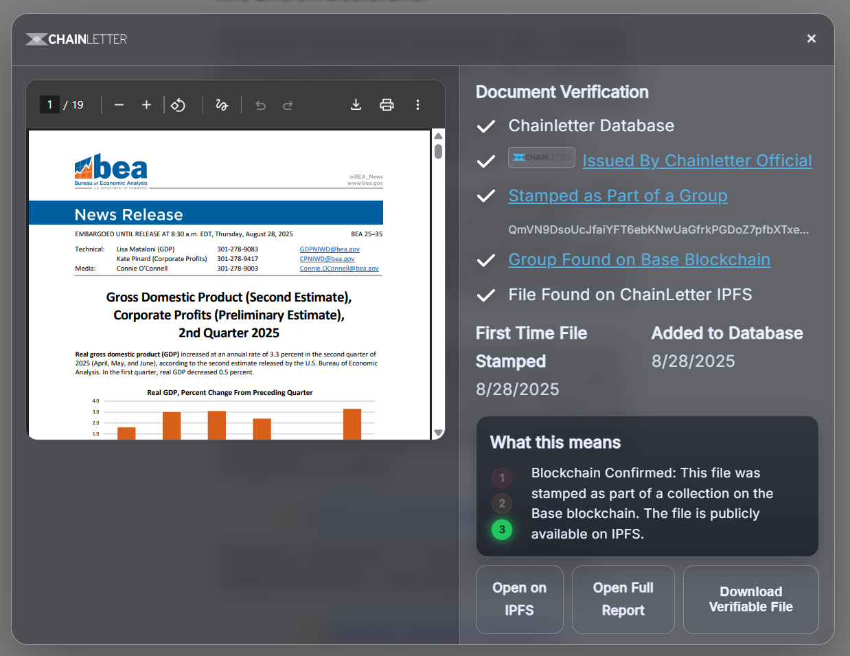 Fraud Resistance: Every blockchain-stamped file carries a unique fingerprint, making forgery virtually impossible.
